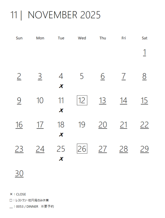 Dinner (月曜日・木曜日・金曜日・土曜日・日曜日) 17:30~20:30 L.O.