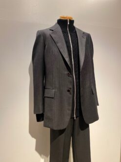 英国羊毛のブルーフェイスラスター種原料の梳毛糸を贅沢に使用したセットアップコーデ。