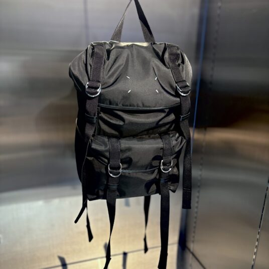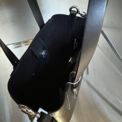 シルバートーンのハードウェアと調節可能なウェビングストラップで仕上げられている。実用的ながらデザイン性を兼ね備えたアイテム。