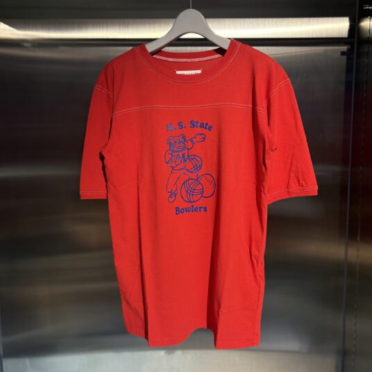 胸部分にカレッジスポーツをモチーフにしたデザインが施されたコットンTシャツ。